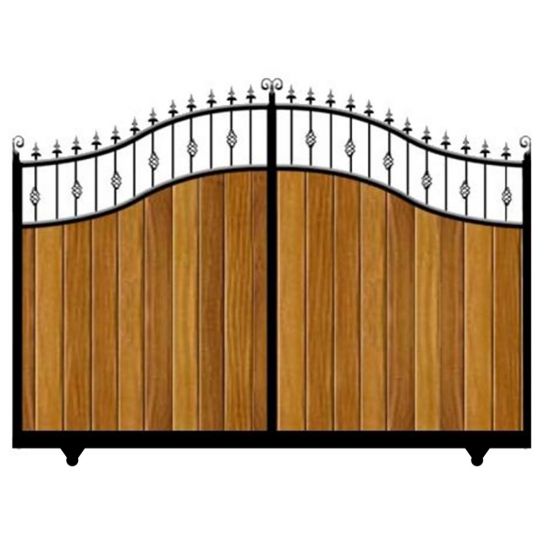 Poarta culisanta din otel si lemn, model PC-24, 4000x1800 mm, vopsita cu lac pentru lemn in diferite nuante